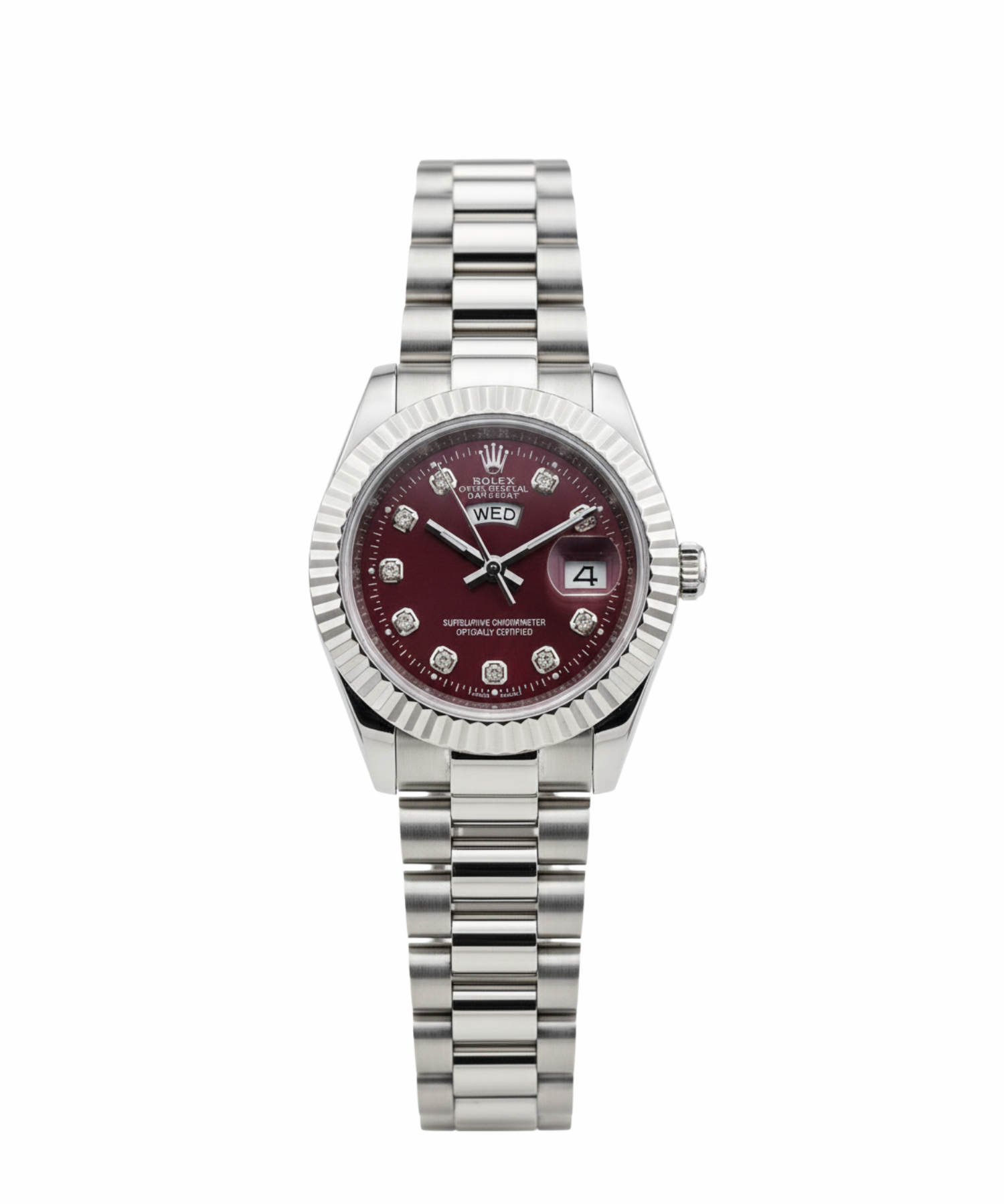 Silver Chain With Silver Design Red Dial Date-Day