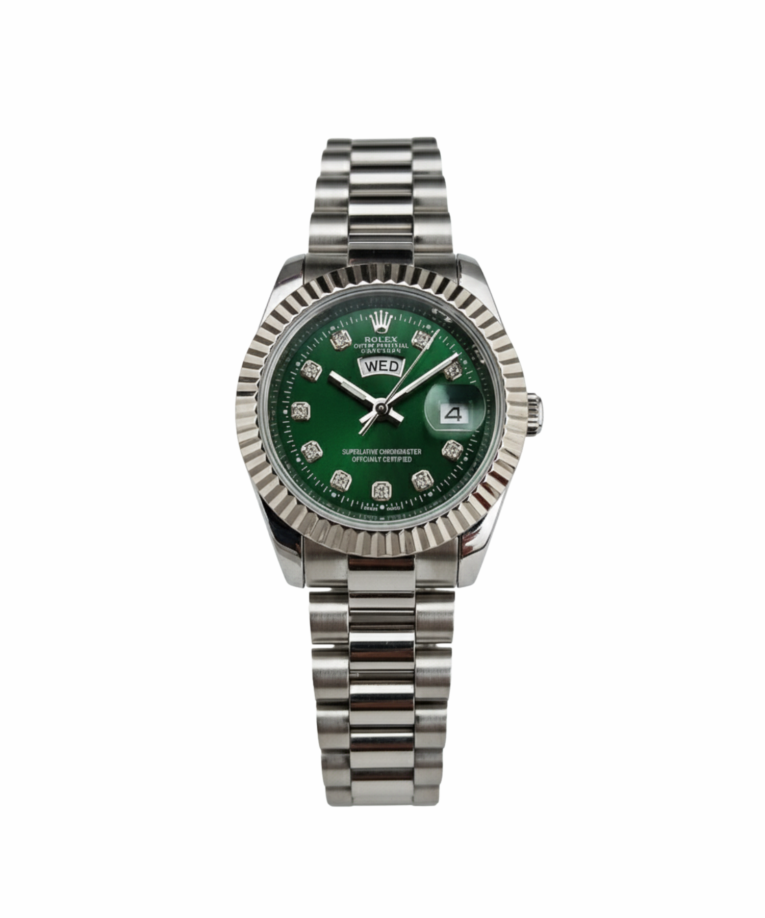 Silver Chain With Silver Design Green Dial Date-Day
